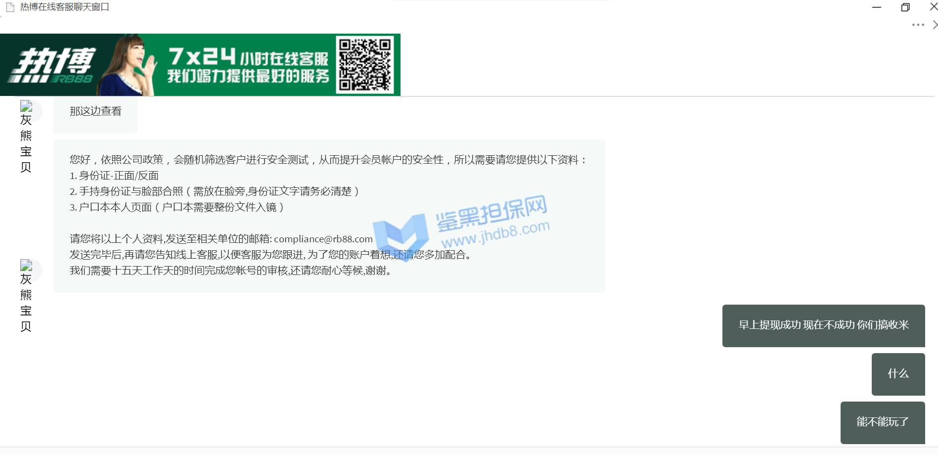 4.用户提交维权需为本人提交,若代替让人发布维权鉴黑担保网将拒绝受理;