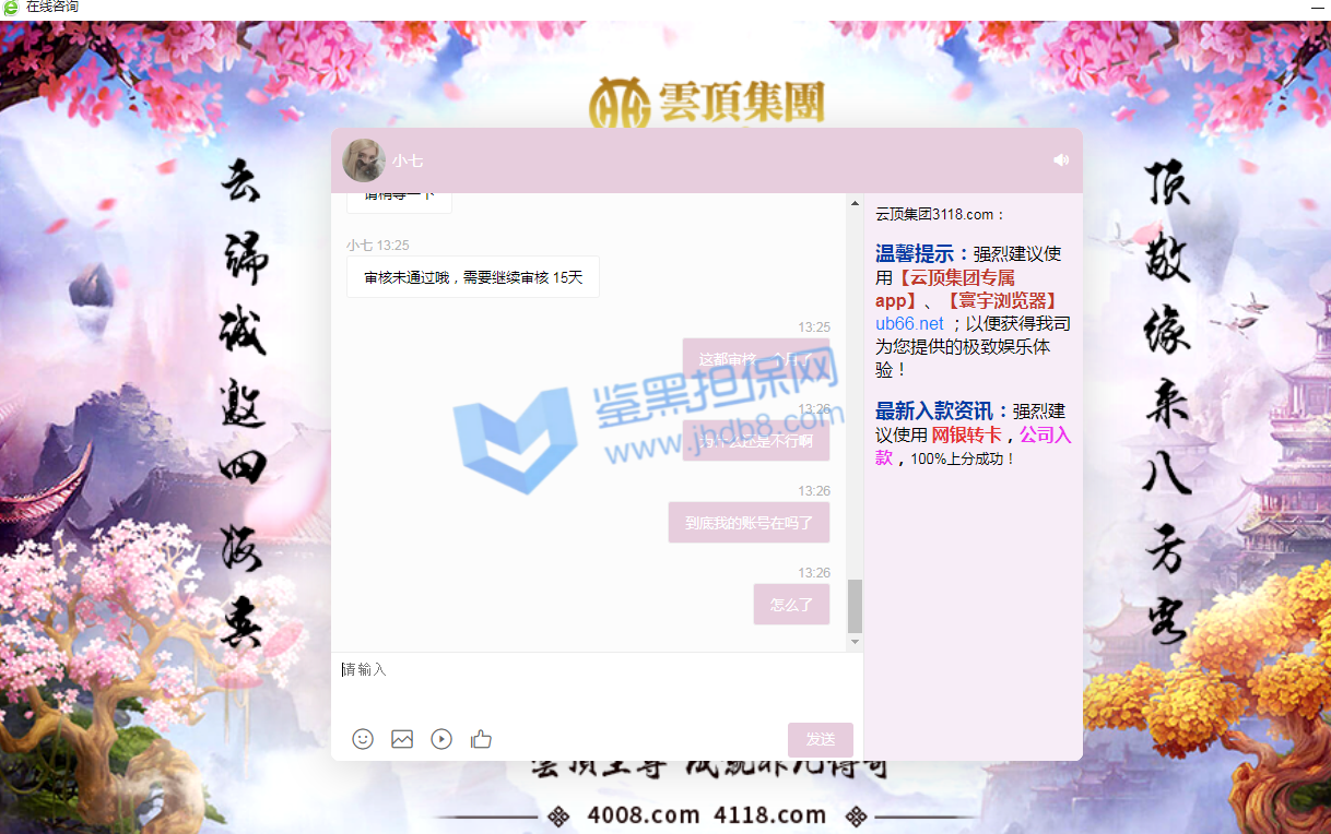 4.用户提交维权需为本人提交,若代替让人发布维权鉴黑担保网将拒绝受理;