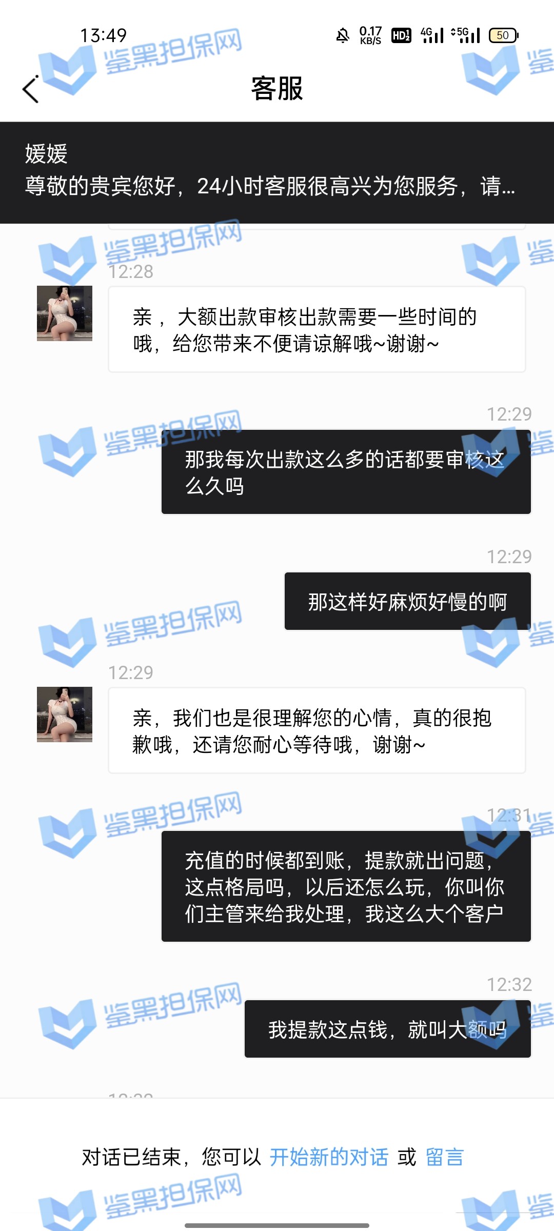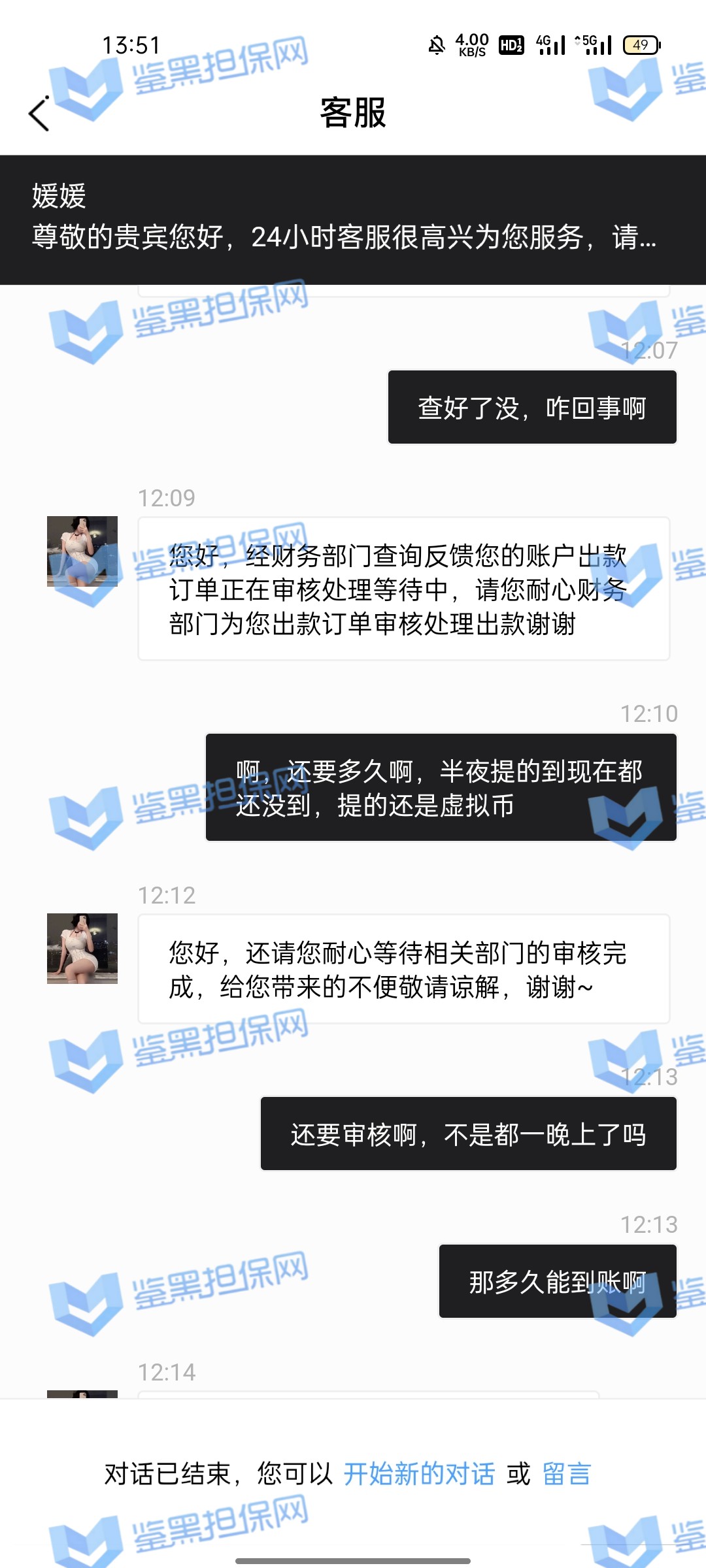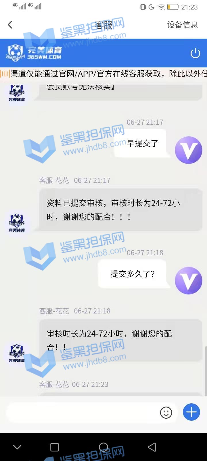 3.用户提交维权申请后资料不齐全,需在一周内补齐鉴黑担保网客服要求的资料,若超过一周时间没有完善维权信息,维权将因资料不全拒绝受理;