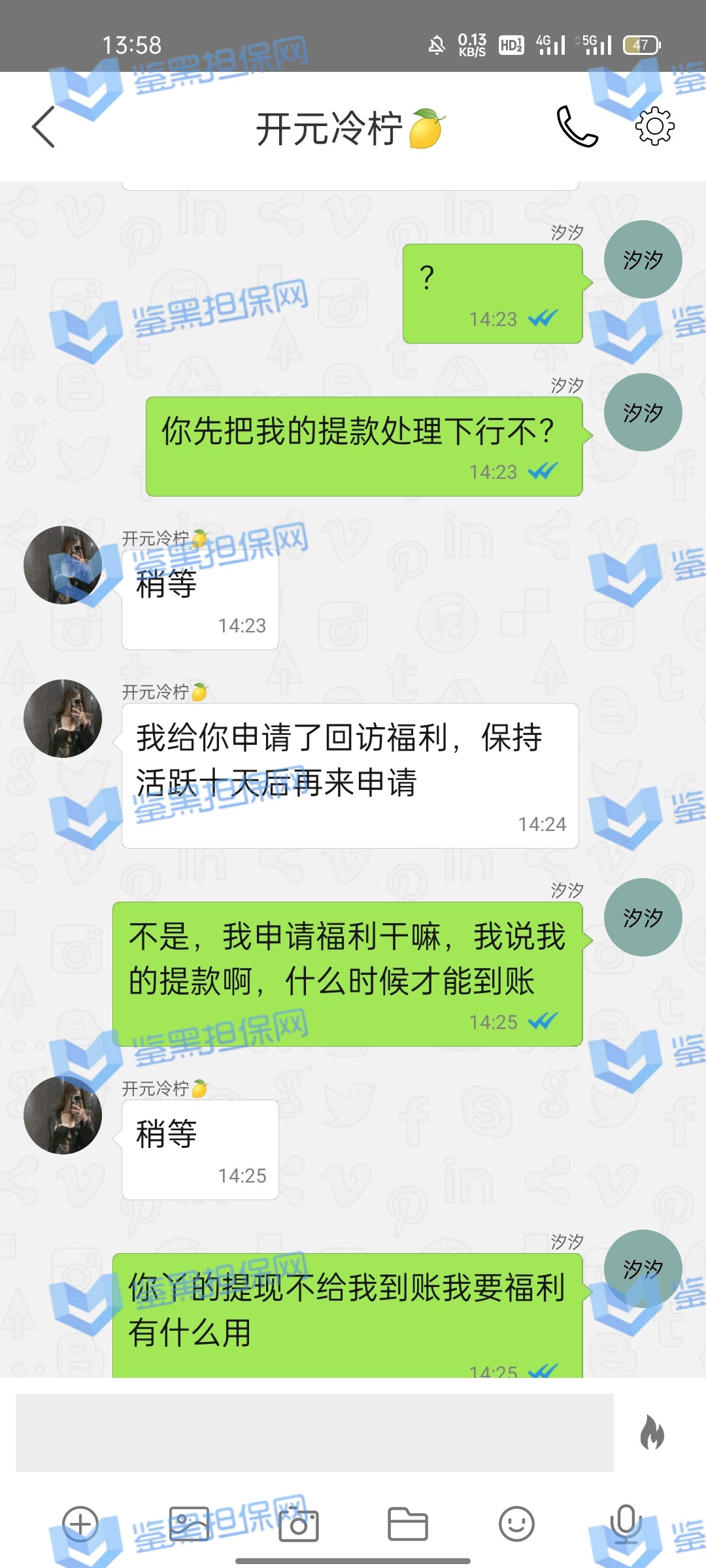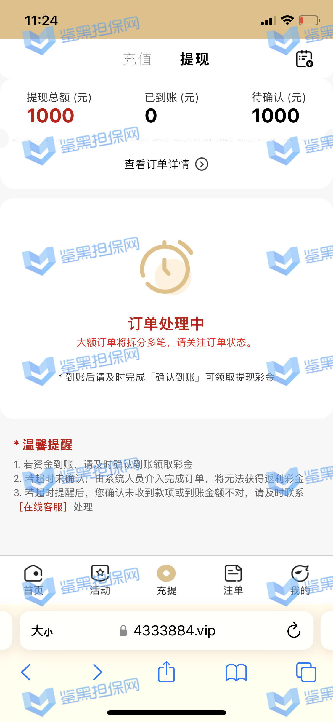 4.用户提交维权需为本人提交,若代替让人发布维权鉴黑担保网将拒绝受理;
